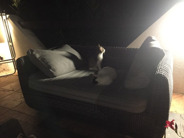 Dans la maison de vacances, deux petits pensionnaires confiés par nos propriétaires ! La compagnie de cette jeune et ravissante maman chat et de son chaton se révéla affectueuse et distrayante à souhait !